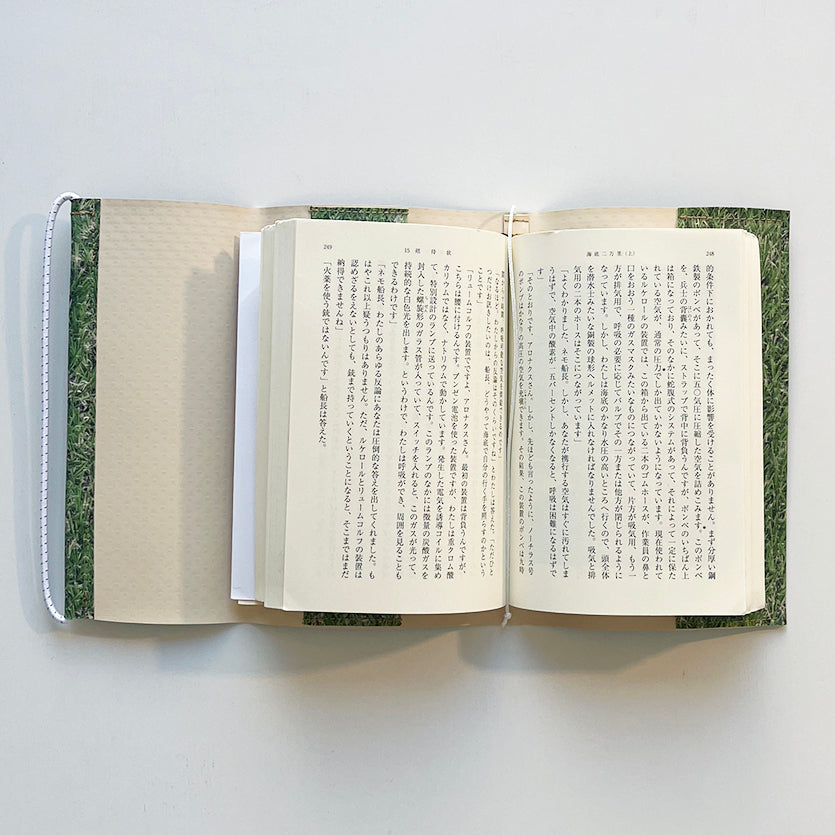 いつでもどこでも大きな公園で本を読む特別感を感じられる芝生のプリントが施されたブックカバーがこちらの "Park Camouflage" です。クッション性の高いターポリン素材により本をしっかりと保護してくれます。また、表面はエンボス加工になっているため、手から滑り落ちるのを防ぎ、また、防水機能もあるため、濡れや汚れにも強いです。